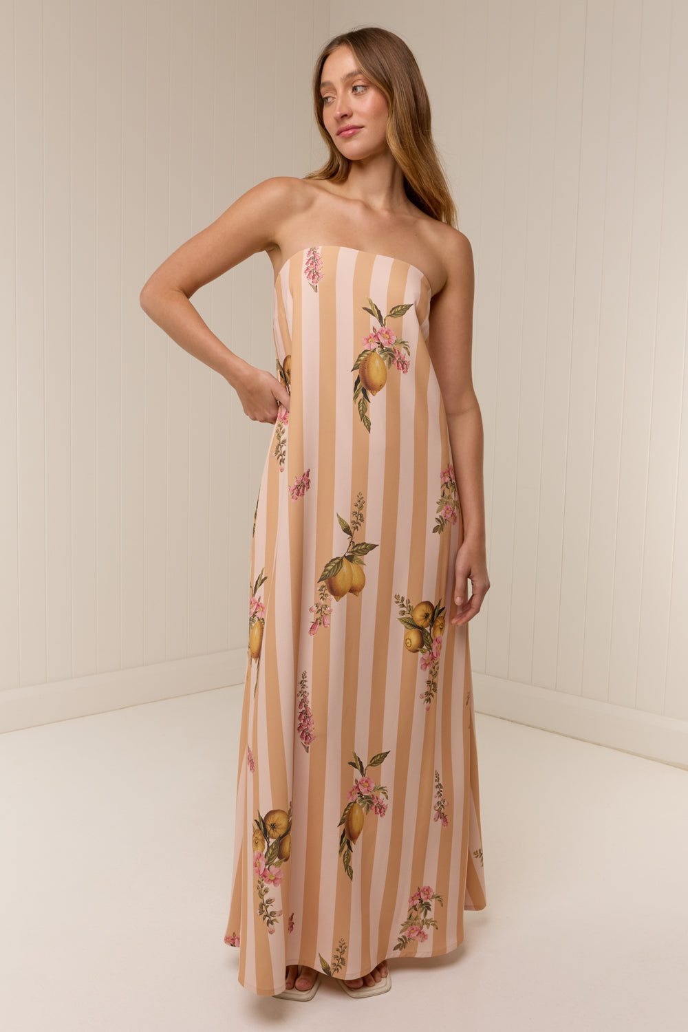 Gabrielle is wearing a size 8 and is 178cm tall with an 81cm bust and a 64cm waist. The Alessia Dress is a standard fit. For a similar fit to Gabrielle, we recommend purchasing your regular size. Please refer to the size chart linked above for standard body measurements.