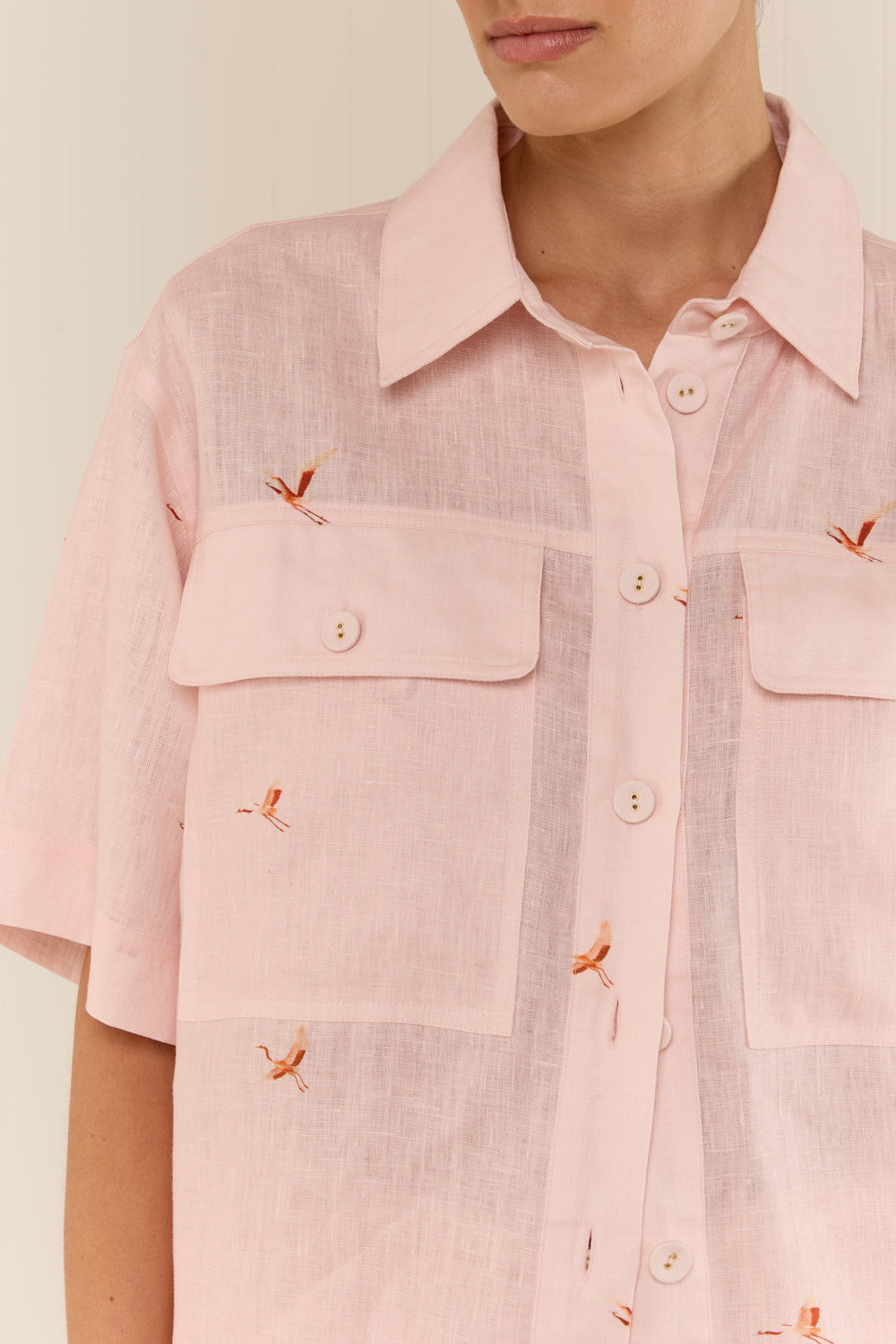 Adrienne is wearing a size 8 and is 178cm tall with an 80cm bust and a 60cm waist. The Alto Shirt is a relaxed boxy fit. For a relaxed look similar to Adrienne, we recommend purchasing your regular size. Please refer to the size chart linked above for standard body measurements.